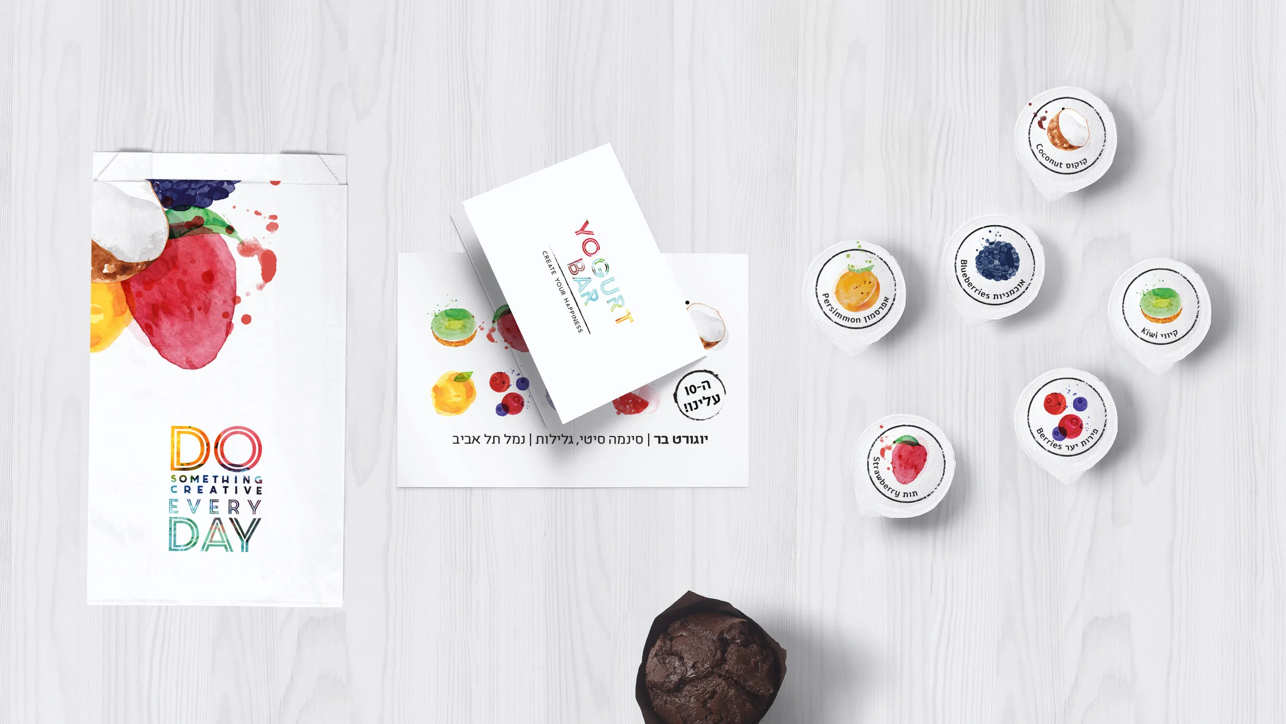 At the sunny Tel Aviv Port, ‘Create your happiness’ was the slogan for this one. Approaching the white yogurt as a blank canvas ready to take on all the colours of the ‘fruit rainbow’.